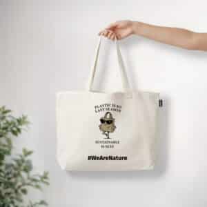 Eine zeitlose Tragetasche für den Alltag mit nachhaltigem Anspruch. Bedruckt mit der verspielten Botschaft „Plastik ist…