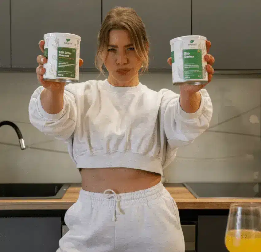 Am Morgen frischen Orangensaft oder Zitronensaft pressen, mit etwas Wasser mischen und 1 Teelöffel (5g) DETOX grüner Mischung hinzufügen.