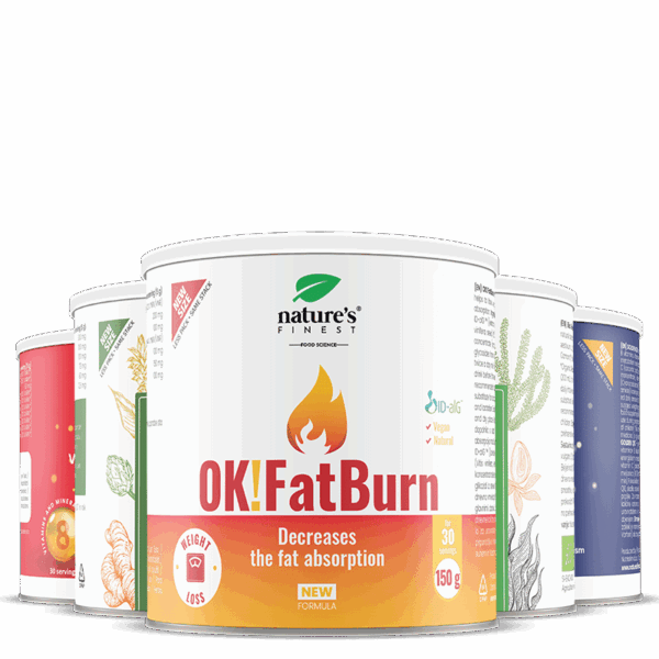 Vor dem Mittagessen 1 Messlöffel (5 g) OK!FATBURN drink in ein Glas Wasser einrühren.