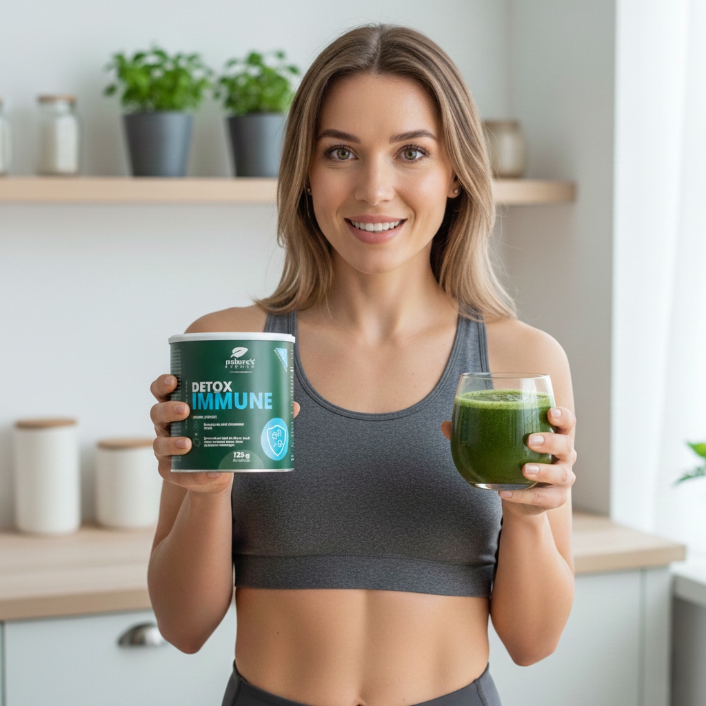 Mischen Sie 1 Messlöffel (5 g) des Produkts Detox Immune in ein Glas Wasser (200 mL) und trinken Sie es.