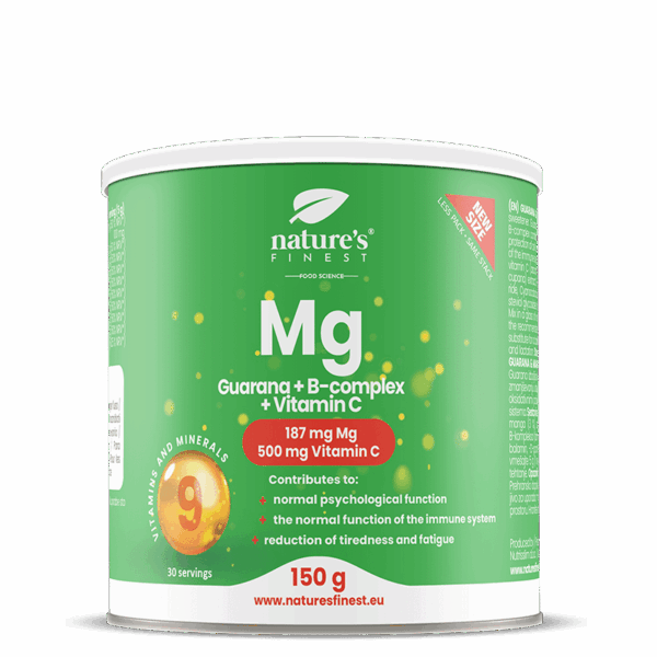 Magnesium + Guarana + B-Komplex + Vitamin C ist für alle gedacht, die mehr Energie, normale Muskelfunktion, Nervensystem und ein starkes Immunsystem bereitstellen möchten.