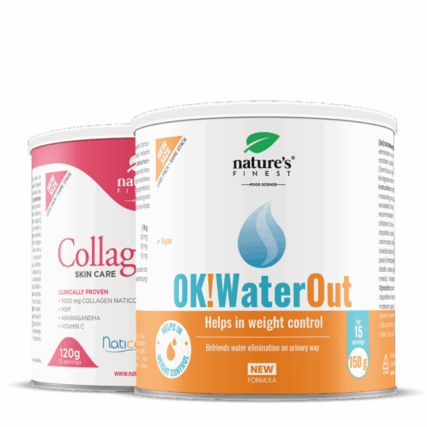 Mischen Sie in den ersten 15 Tagen morgens 2 Messlöffel (10 g) OK!WaterOut Drink mit Ananasgeschmack in ein Glas Wasser. Mischen Sie dann in den nächsten 12 Tagen nachmittags oder abends 2 Messlöffel (10 g) SkinCare Collagen in ein Glas Wasser, warten Sie 2 Minuten, bis sich das Kollagen vollständig aufgelöst hat, und trinken Sie es. Das Getränk hat einen angenehmen Erdbeergeschmack. Mit 10 g des Pulvers nehmen Sie 5 g Naticol-Kollagenpeptide zu sich.