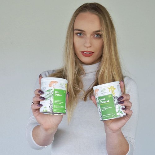 Morgens 1 Teelöffel (5 g) BIO DETOX-Mischung in frisch gepresstem Orangen- oder Zitronensaft, verdünnt mit Wasser, einrühren und trinken. So aktivieren Sie den Körper und fördern die Entgiftung.