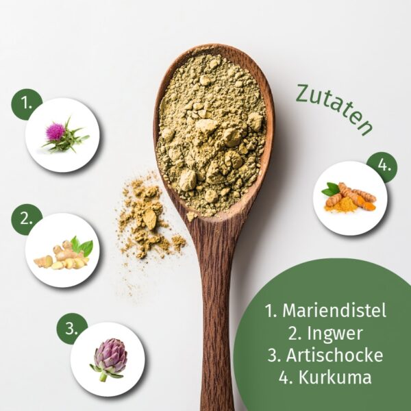 Abends 1 Teelöffel (5 g) LIVER CLEANSE in einem Glas Wasser einrühren und trinken. Dies unterstützt die nächtliche Leberreinigung und nutzt die Ruhezeit optimal aus.