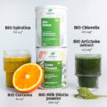 Mischen Sie morgens 1 Teelöffel (5 g) der DETOX-Grünmischung in einen frisch gepressten Orangen- oder Zitronensaft, gemischt mit Wasser, und trinken Sie es. Dies weckt den Körper und regt die Entgiftung an.