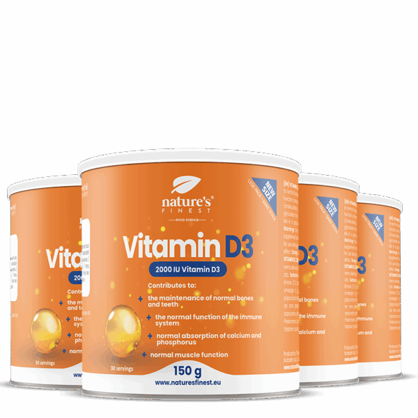 Mit Vitamin D3-Pulver sorgen wir für die beste Aufnahme, die beginnt, sobald sie mit unserem Speichel in Kontakt kommt. Die Hauptaufgabe von Vitamin D besteht darin, die Homöostase und eine konstante Konzentration von Kalzium und Phosphat im Plasma aufrechtzuerhalten.