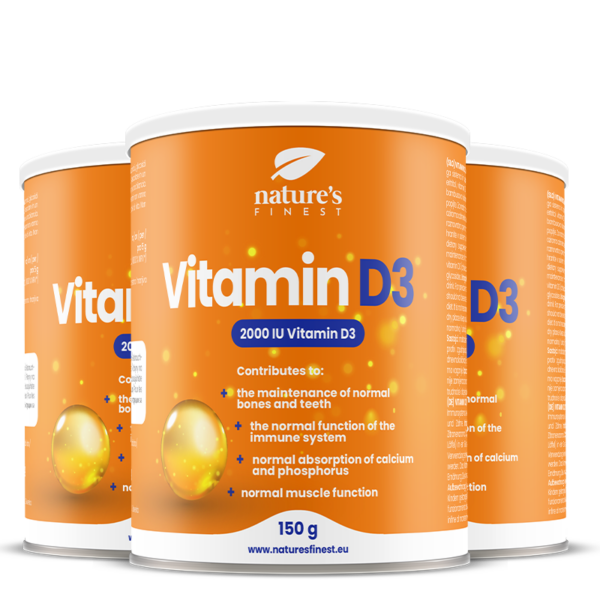 Mit Vitamin D3-Pulver sorgen wir für die beste Aufnahme, die beginnt, sobald sie mit unserem Speichel in Kontakt kommt. Die Hauptaufgabe von Vitamin D besteht darin, die Homöostase und eine konstante Konzentration von Kalzium und Phosphat im Plasma aufrechtzuerhalten.
